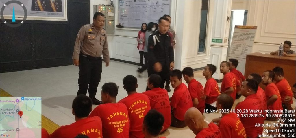 Batu Bara,Buser24.com – Demi memastikan proses persidangan berjalan aman dan tanpa gangguan, personel Polsek Labuhan Ruku melaksanakan tugas pengawalan dan pengamanan ketat terhadap para tahanan yang menjalani sidang di Pengadilan Negeri Kisaran, Selasa (18/11/2025).