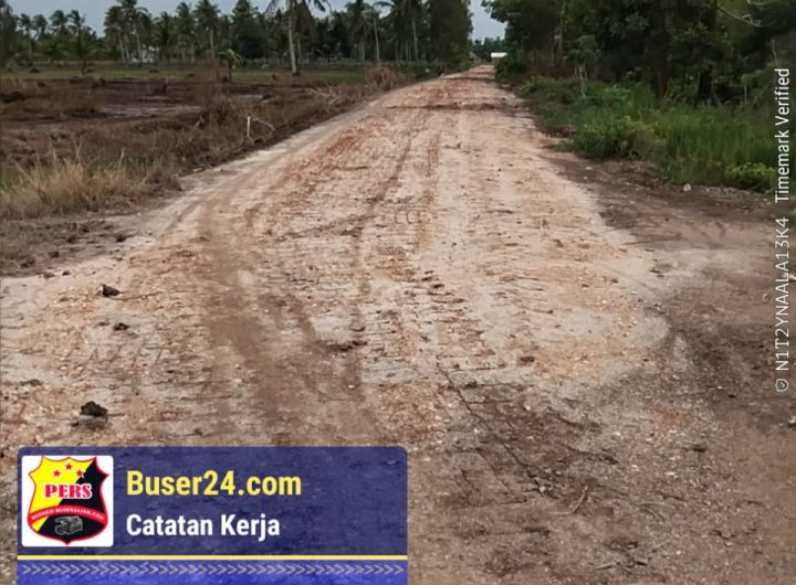 BUSER24.COM /PALEMBANG — Pembangunan pengerasan jalan di Desa Telang sari, Kecamatan Tanjung Lago, Kabupaten Banyuasin, Sumatera Selatan,...