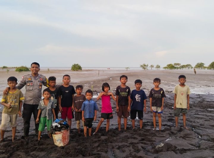 Buser24com. Meranti – Dengan langkah mantap di atas pantai berlumpur, Bhabinkamtibmas Desa Sendaur dan Desa Kayu Ara,...