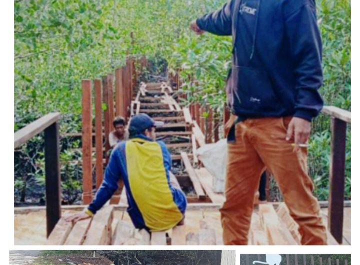 BERAU – Aktivitas proyek pembangunan jembatan di kawasan wisata mangrove Tanjung Batu, Kecamatan Pulau Derawan, Kabupaten Berau,...