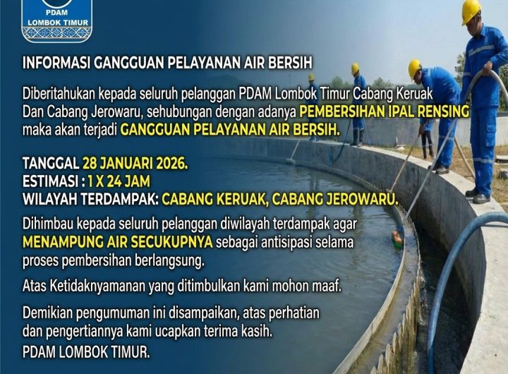 BUSER24.COM, Lombok Timur (NTB)-Perusahaan Daerah Air Minum (PDAM) Lombok Timur menginformasikan kepada seluruh pelanggan di Cabang Keruak...