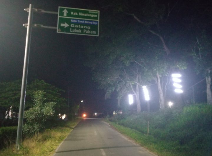 Bintang Bayu [ Sergai ] Penerangan Jalan Umum ( PJU ) yang dipasang untuk menerangi area saat...