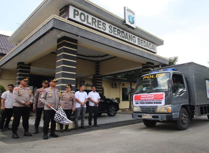 SERGAI | Buser24. com — Kapolres Serdang Bedagai, AKBP Jhon Sitepu, SIK, MH, memberangkatkan logistik bantuan sembako...