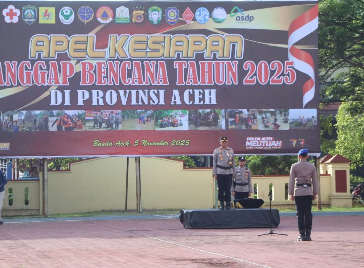 Buser24.com | Banda Aceh. Institusi Kepolisian Polda Aceh menggelar Apel Kesiapan Tanggap Darurat Bencana Tahun 2025 di...