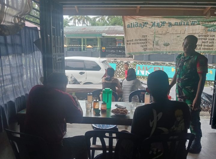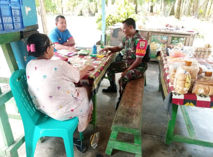 Tapteng- Pembinaan teritorial(binter) Babinsa Koramil 04/Pinangsori Kodim 0211/Tapanuli Tengah, Serka Mugi melaksanakan komunikasi sosial dengan warga penjual...