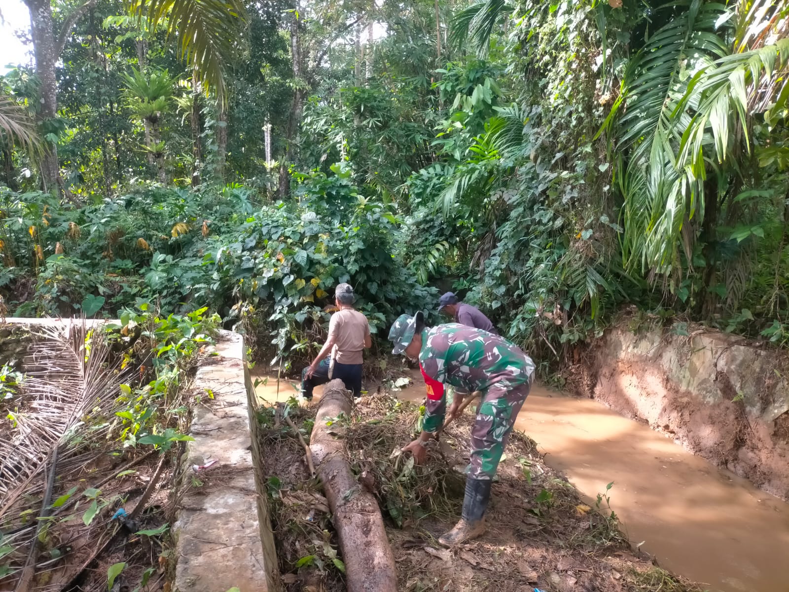 Seperti yang dilakukan oleh Babinsa Koramil 04/Pinangsori, Kodim 0211/Tapanuli Tengah, Serda TE Sembiring bersama warga masyarakat melaksanakan kerja bakti pembersihan saluran irigasi di Desa Aek Gambir, Kecamatan Lumut, Kabupaten Tapanuli Tengah, Rabu (21/01/2026)