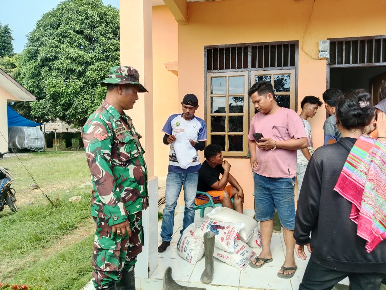 Manduamas ,Kodim 0211/TT – Babinsa Koramil 01/Barus koptu james siregar Melakukan pendampingan Pendistribusian Bantuan Logistik di Desa binaan tepatnya di desa Binjohara baru Kecamatan ManduamasKabupaten Tapanuli Tengah Selasa (06/01/202