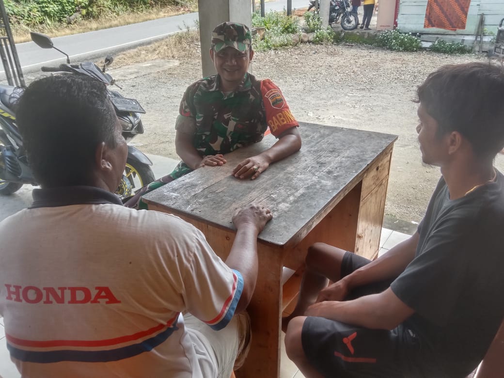 Tapteng-Babinsa Ciptakan Keakraban dengan Warga Binaan Melalui Komsos,Demi menjalin keakraban dengan tokoh masyarakat yang merupakan tugas pokok Babinsa. Yang di laksanakan di rumah pak Toni lubis desa sigolang kecamatan Adam Dewi kabupaten Tapanuli Tengah. sabtu (30-08-2025)