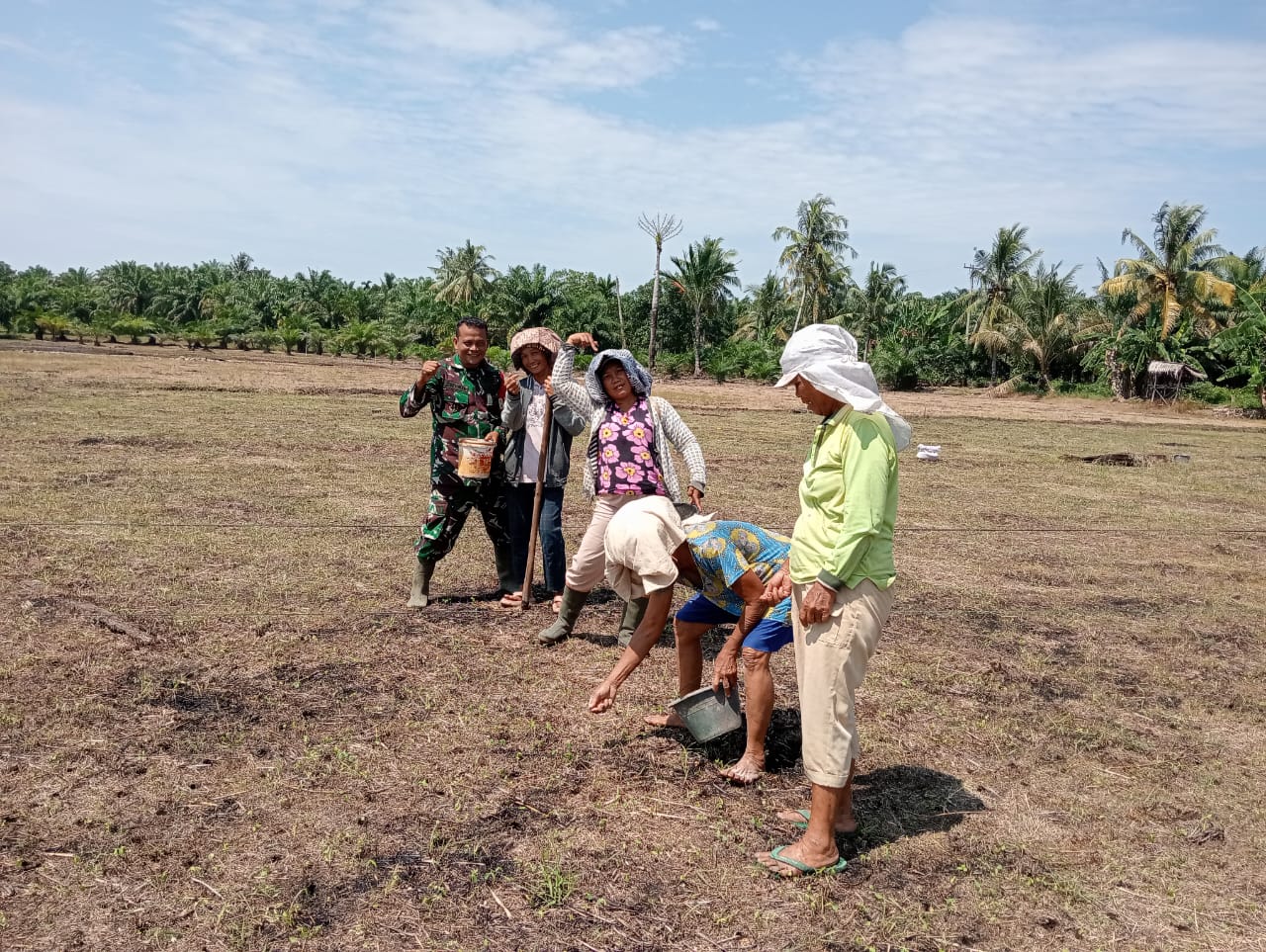 Saya dan kelompok tani turun lansung ke sawah untuk membantu membajak sawah dan menanam bibit padi ini merupakan bagian dari dukungan TNI terhadap ketahanan pangan.Ujar.Serda Rianto Aritonang Jumat. (11/07/2025).