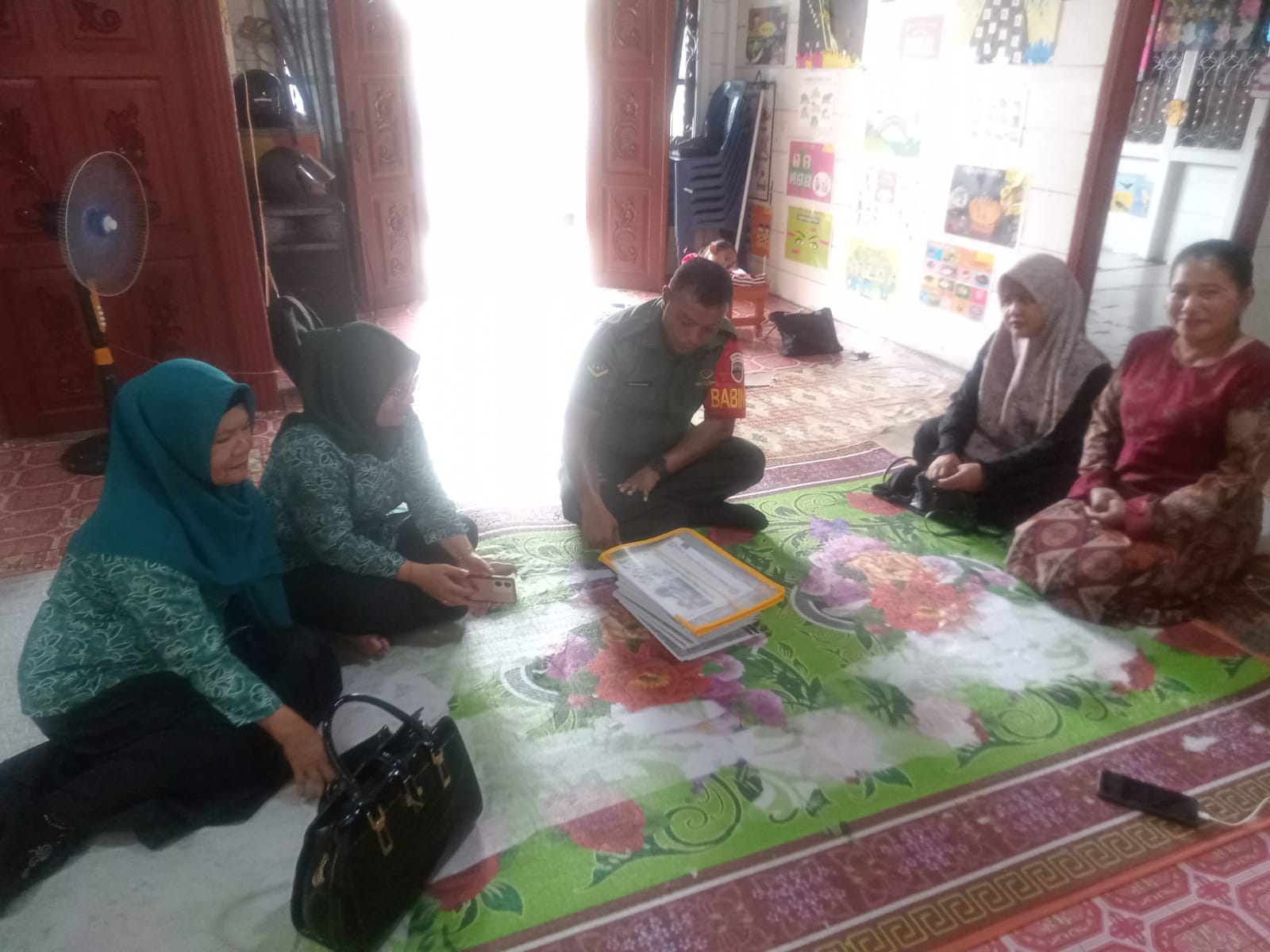Serda Hilman Purba Babinsa Koramil 06/Kota Kodim 0211/TT melaksanakan kegiatan komsos bersama ibu-ibu PKK dan Kader warga binaan di Jln.Kakap Kel. Pancuran Pinang, Rabu (19/11/2025).