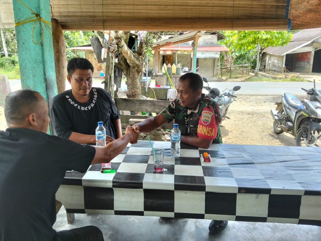 TAPTENG_Dalam menjalin kebersamaan dan keakraban dengan warga binaan,Sertu Adi Wiguna. melaksanakan kegiatan Komunikasi Sosial (Komsos) dan berkoordinasi dengan warga masyarakat. Bertempat di salah satu warung milik warga binaan, yang berlokasi di Desa Muara bolak Kec Sosorgadong Kabupaten Tapanuli Tengah.