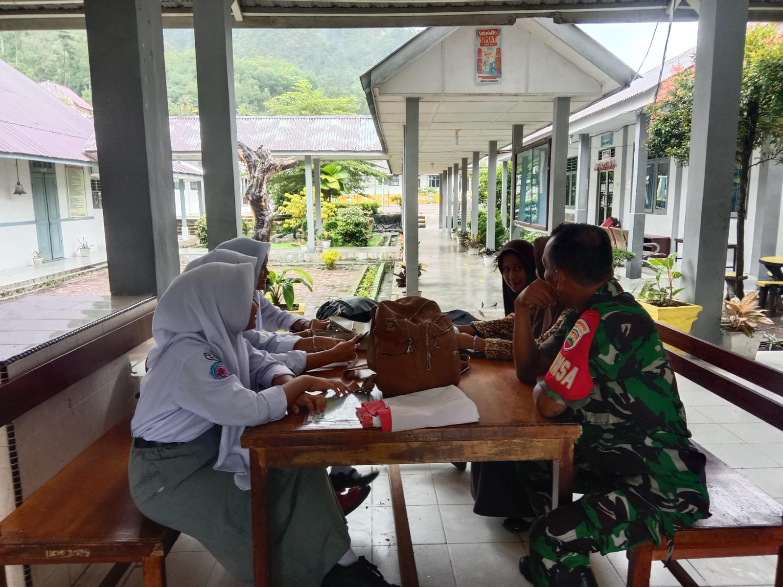 Tapteng-Wujudkan rasa kecintaan generasi muda kepada NKRI, Babinsa Koramil 06/Kota Kodim 0211 Sertu Domu Tua Panjaitan memberikan pembekalan Bela Negara kepada Beberapa orang siswi kelas XI SMK Negeri 2 Kota Sibolga bertempat di Jalan Jendral Maraden Panggabean, Kel. Angun Nauli, Kec. Sibolga Utara, Senin (24/11/2025).