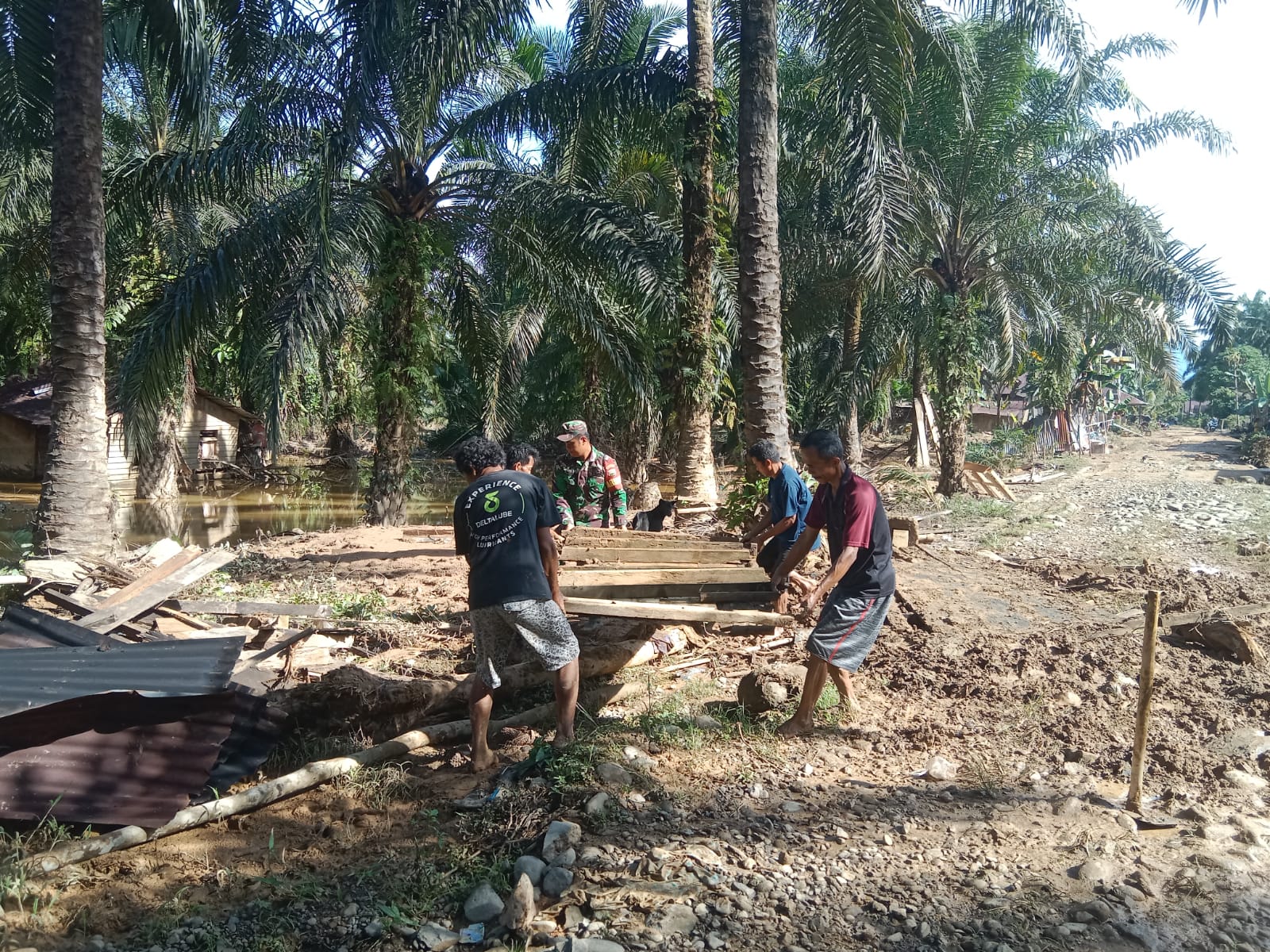 ‘’Kegiatan ini dilakukan pasca terjadinya bencana alam banjir,kegiatah bergotong royong juga merupakan salah satu cara untuk memelihara kekompakan antara babinsa dengan warganya melalui kegiatan inilah bentuk kepedulian kita kepada lingkungan’’.Jelas serda Sukirno