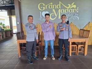 Kunjungan tersebut disambut langsung oleh Direktur Hotel Grand Madani, Rega Fajar Firdaus, di lobi hotel. Suasana pertemuan berlangsung hangat dan penuh keakraban, di mana kedua pihak saling berdiskusi terkait upaya menjaga keamanan dan ketertiban di lingkungan hotel serta wilayah sekitarnya.