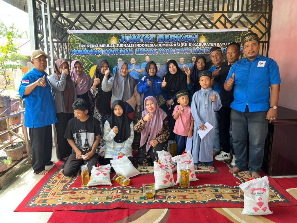 Batu Bara,Buser24.com – Dewan Pimpinan Cabang Perkumpulan Jurnalis Indonesia–Demokrasi (DPC PJI-D) Kabupaten Batu Bara menggelar kegiatan sosial Jumat Berkah dengan berbagi sembako dan tali asih kepada 50 anak yatim serta kaum duafa. Kegiatan tersebut dilaksanakan di Desa Suka Raja, Kabupaten Batu Bara, Jumat (13/03/2026).