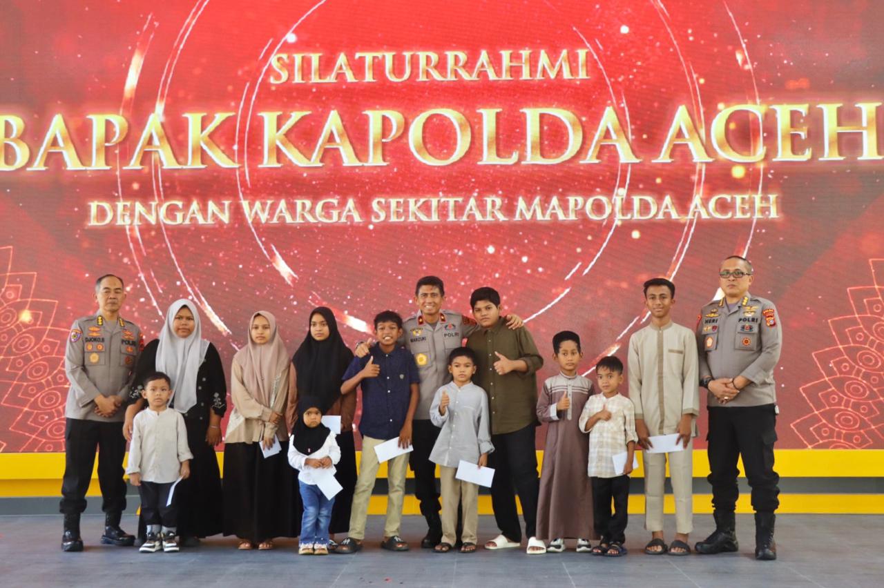Dalam silaturahmi dan temu ramah tersebut, Kapolda Aceh juga menyerahkan santunan secara simbolis kepada 250 anak yatim dari lima gampong yang berada di sekitar lingkungan Mapolda Aceh.