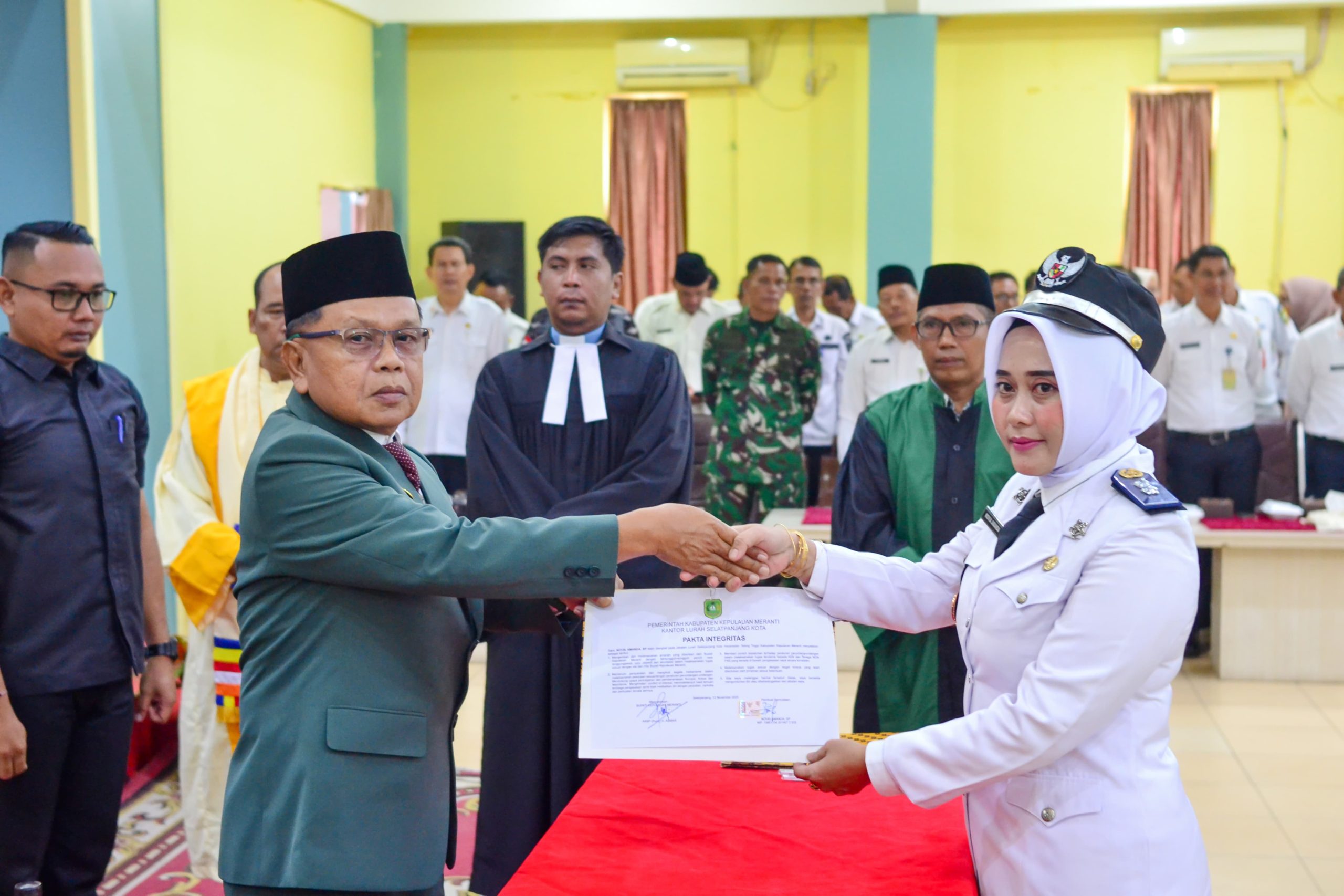 Pelantikan tersebut turut dihadiri unsur Forum Koordinasi Pimpinan Daerah (Forkopimda) Kabupaten Kepulauan Meranti, Sekretaris Daerah, Staf Ahli, para Asisten, Inspektur, Kepala Badan dan Dinas, Direktur RSUD, Kepala Kantor, serta pejabat yang dilantik. ASN dan insan pers juga tampak memenuhi ruangan acara.