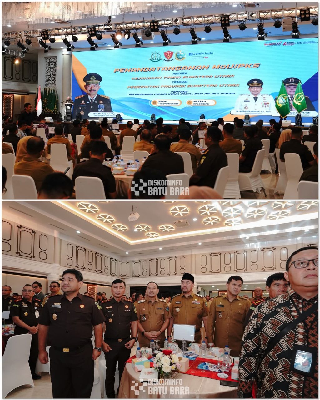 Medan,Buser24.com — Pemerintah Provinsi Sumatera Utara bersama Kejaksaan Tinggi Sumatera Utara resmi menjalin kerja sama strategis melalui penandatanganan Memorandum of Understanding (MoU) tentang sinergitas pelaksanaan pidana kerja sosial bagi para pelaku tindak pidana di Sumatera Utara. Acara ini turut dihadiri Bupati Batu Bara, H. Baharuddin Siagian, SH, M.Si, yang menyatakan komitmen penuh mendukung implementasi kebijakan tersebut di Kabupaten Batu Bara.