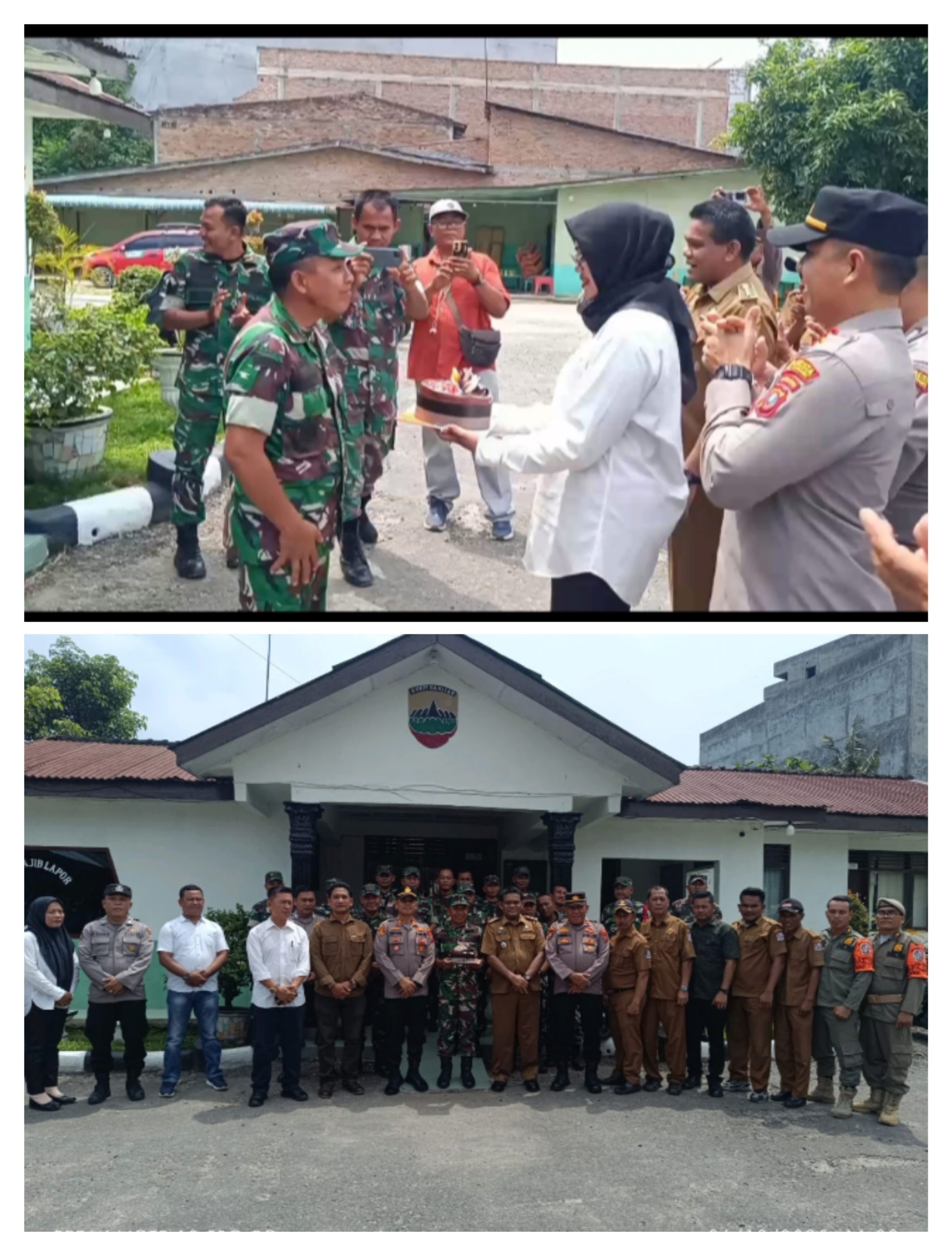 GALANG- Camat Galang Drs Syahdin Setia Budi Pane Bersama Kapolsek Galang AKP Dodi Martha SH.MH Beserta Personil Polsek Galang memberikan ucapan selamat dan kejutan kepada Danramil 18/Glg dalam rangka memperingati Hari Ulang Tahun (HUT) ke-80 Tahun Tentara Nasional Indonesia (TNI), Senin (6/10/2025) pagi di Markas Koramil 18/Glg, Lingkungan 1 Kelurahan Galang Kota Kecamatan Galang Kabupaten Deli Serdang