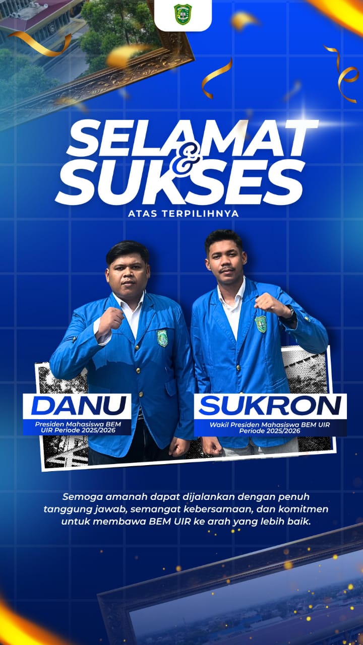 selamat kepada Danu & Sukron, semoga amanah yang diberikan dapat diemban sebaik-baiknya selama satu periode kedepan demi Nama Universitas Islam Riau dan Demi seluruh mahasiswa Universitas Islam Riau.