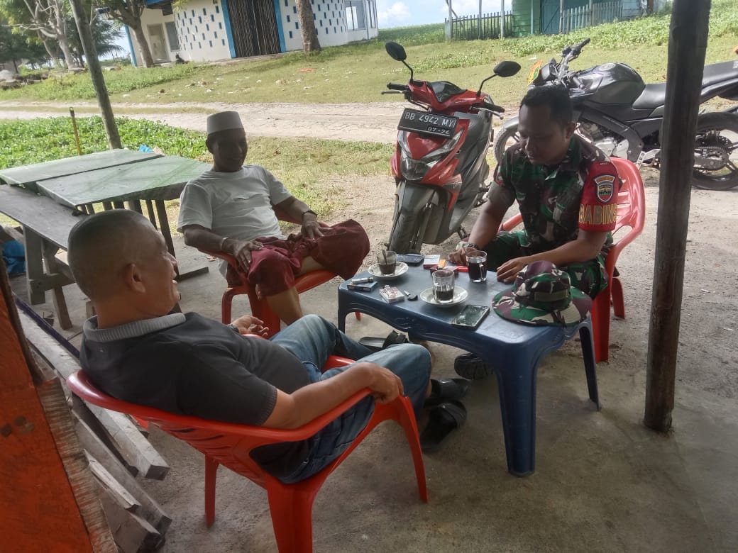 TAPTENG_Babinsa Koramil 01 Barus jajaran Kodim 0211/TT Koptu Asep melaksanakan Komunikasi Sosial (Komsos) bersama tokoh masyarakat di kedai pak Togi Pasaribu di desa sirami ramian Kecamatan Adam Dewi Kabupaten Tapanuli Tengah, dengan tujuan menciptakan kedekatan bersama warga binaan, jumat (20/06/2025).
