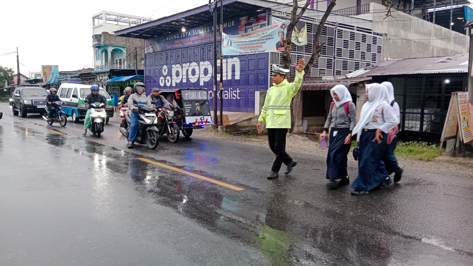 Aksi humanis di tengah cuaca kurang bersahabat itu menuai apresiasi dari warga yang melintas. Banyak yang menilai bahwa dedikasi polisi lalu lintas pagi ini mencerminkan bentuk nyata pengabdian tanpa pamrih bagi keselamatan masyarakat.