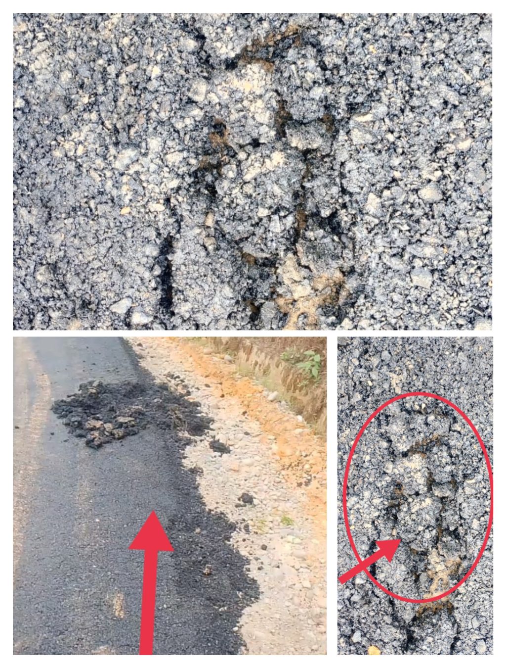 Berdasarkan pantauan wartawan di lapangan, lapisan hotmix terlihat sangat tipis dan diduga tidak melalui proses pemadatan maksimal. Akibatnya, aspal mudah terkelupas, terutama saat terkena air hujan.