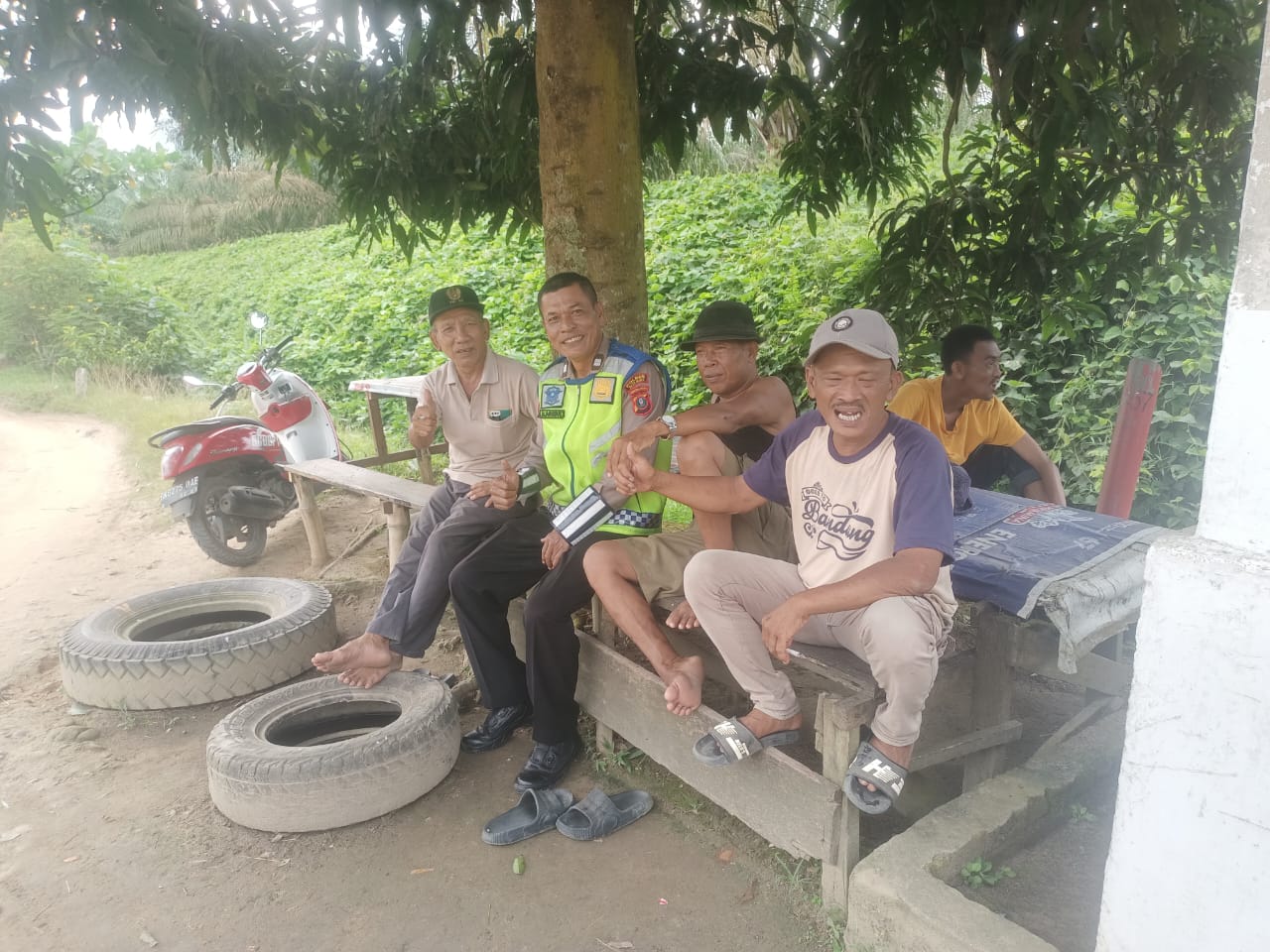 Dipimpin oleh Aiptu Aljuidin Rajagukguk, personel Satlantas menyampaikan edukasi keselamatan lalu lintas (Dikmas Lantas) secara langsung kepada pengguna jalan yang melintas dan masyarakat sekitar. Pendekatan tanpa jarak ini membuat suasana penyampaian materi menjadi lebih hangat dan mudah diterima.