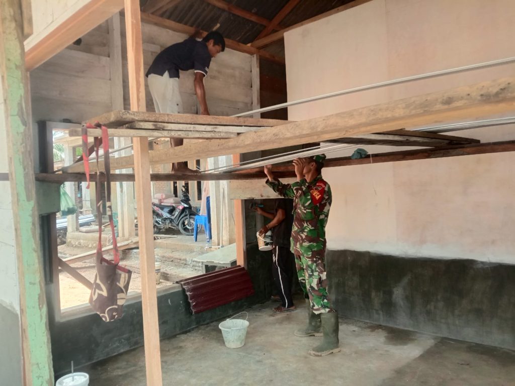 Komsos Babinsa Koramil 04/Pinangsori, dalam membantu warga membangun pemasangan dinding dan plafon rumah merupakan bentuk mempererat Silahturahmi, dan menjaga Kekompakan, dalam bekerja dan sekaligus meringankan beban warga binaan.