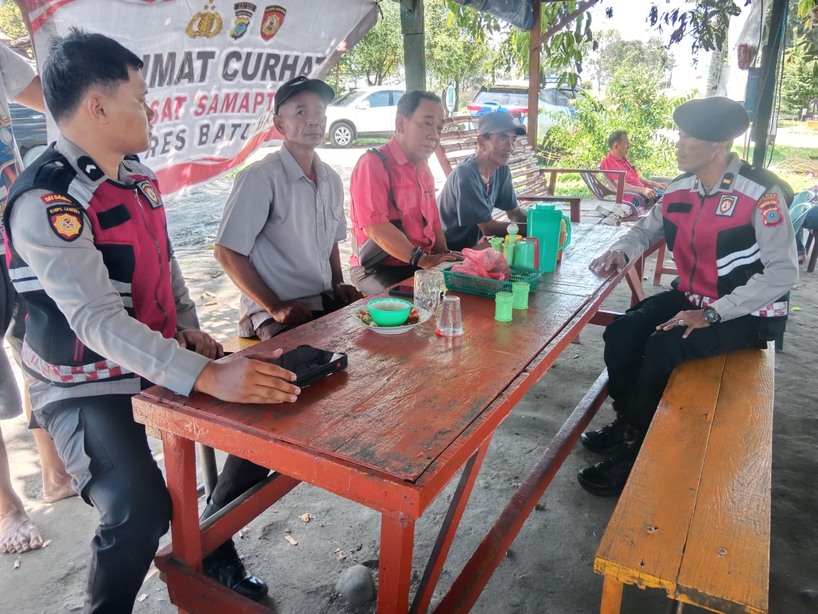 Selanjutnya KBO Sat Samapta dan Kanit Pam Obvit beserta Personil Sat Samapta lainnya memberikan pencerahan dan cooling sistem kepada masyarakat sekitar agar saling menjaga keamanan dan kenyamanan bagi kita Pihak Polisi dan masyarakat untuk menjaga diri.