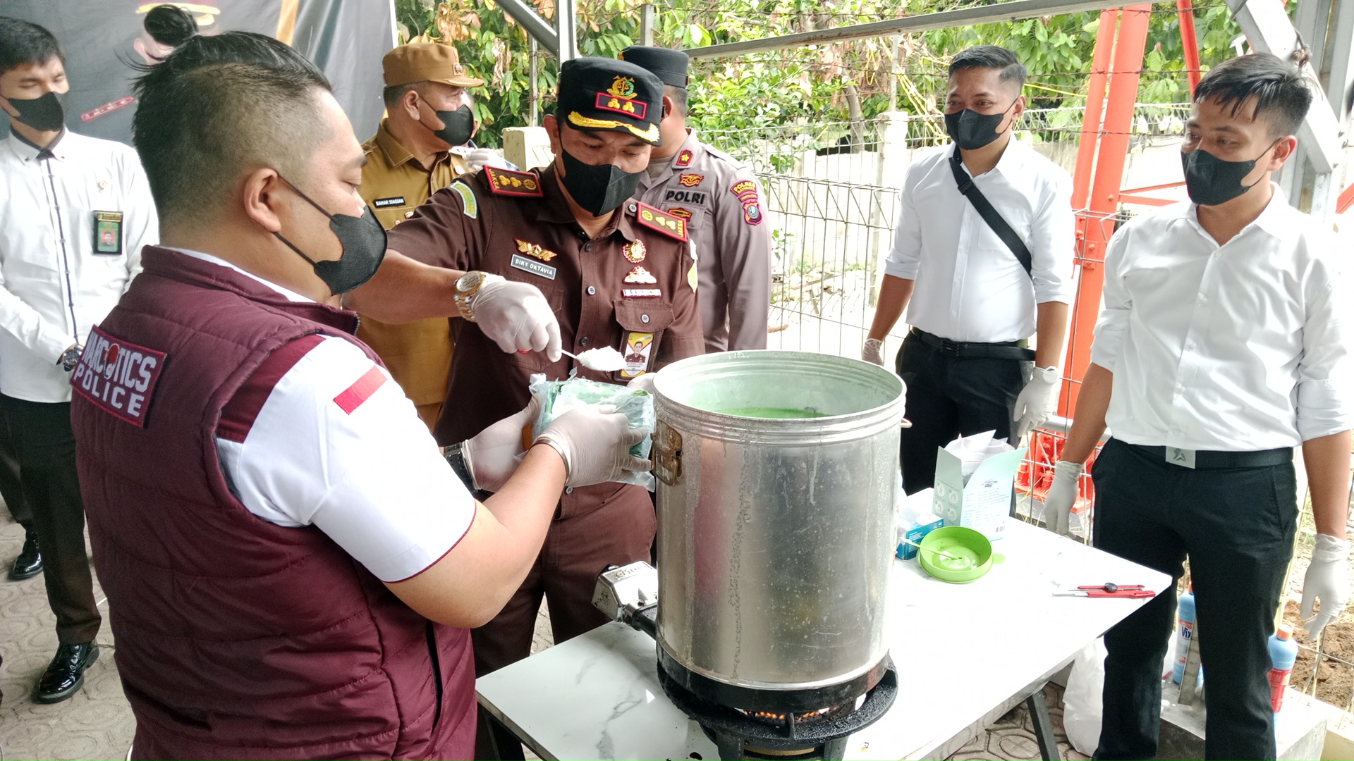 Pemusnahan barang bukti narkotika jenis pil ekstasi dan shabu dimusnahkan dengan diblender dan larutkan didalam air mendidih yang dicampur dengan air deterjen.