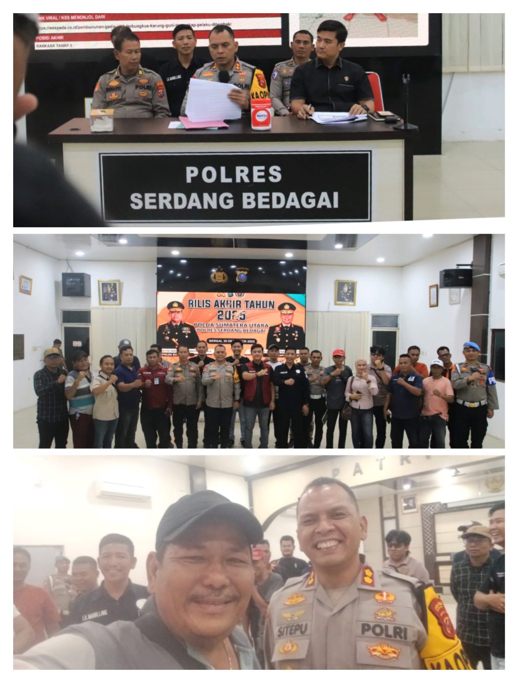 SERGAI | Buser24. com — Kapolres Serdang Bedagai AKBP Jhon HR Sitepu SIK. MH, pimpin kegiatan Rilise Akhir Tahun 2025 pada hari Selasa 30/12. Pukul 15 : 00 Wib yang di laksanakan di aula Mako Polres Sergai.