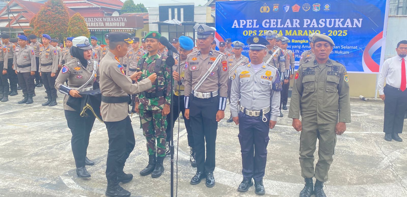 Sebagai bentuk implementasi Polresta Mamuju menggelar Operasi Zebra Marano Tahun 2025 yang akan diselenggarakan selama dua pekan, mulai tanggal 17 s.d 30 Nopember 2025 dengan tema “Terwujudnya Kamseltibcarlantas Yang Aman, Nyaman dan Selamat Menjelang Pelaksanaan Ops Lilin 2025.”