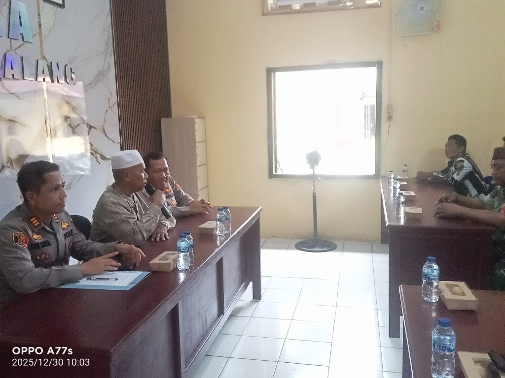 Galang | Kapolsek Galang, AKP Dodi Martha, SH, MH, menggelar kegiatan doa bersama untuk korban bencana alam yang melanda tiga provinsi di Indonesia. Kegiatan tersebut berlangsung khidmat dan diikuti oleh tokoh agama, tokoh pemuda, unsur Forkopimcam, serta masyarakat Kecamatan Galang.