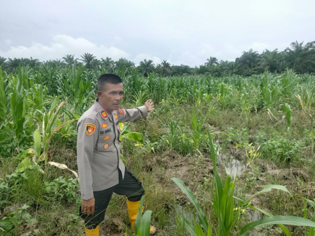 Dari hasil pengecekan, diketahui bahwa sebagian area lahan jagung mengalami kerusakan akibat terendam banjir yang melanda wilayah Dusun Hutabagasan beberapa waktu lalu.
