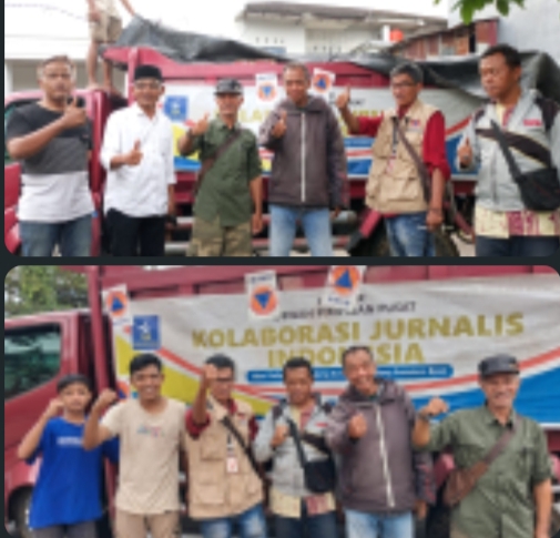 Sore yang diselimuti awan mendung tak menyurutkan semangat para jurnalis dan relawan. Di depan sebuah truk pengangkut berwarna merah menyala, yang punggungnya terhias spanduk bertuliskan “KOLABORASI JURNALIS INDONESIA”, enam sosok berdiri tegak dengan kepalan tangan sebagai simbol persatuan dan ketangguhan. Wajah-wajah mereka, yang terdiri dari generasi muda hingga senior, memancarkan determinasi untuk membantu sesama.