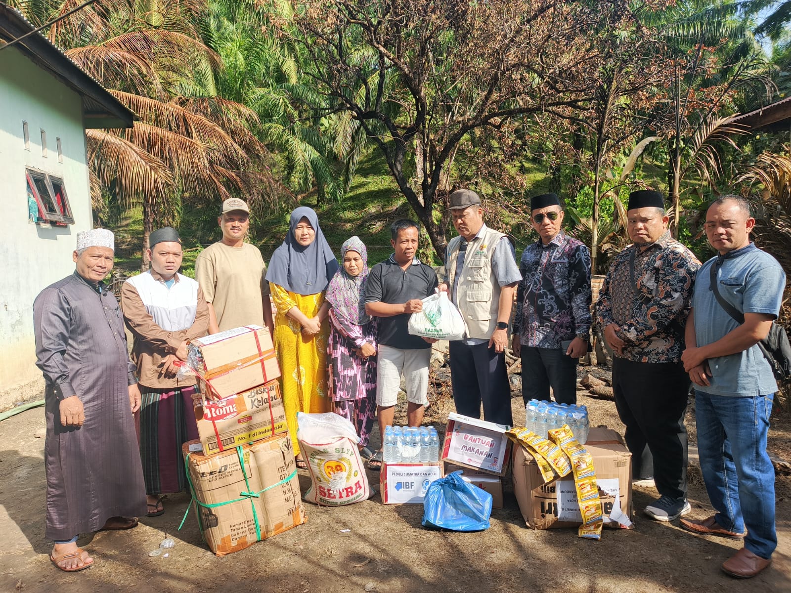 Pengurus BAZNAS Kabupaten Langkat Juli Hukman, SE menyampaikan keprihatinan dan menyalurkan bantuan berupa sembako, pakaian layak pakai dan uang tunai sebesar satu juta rupiah.
