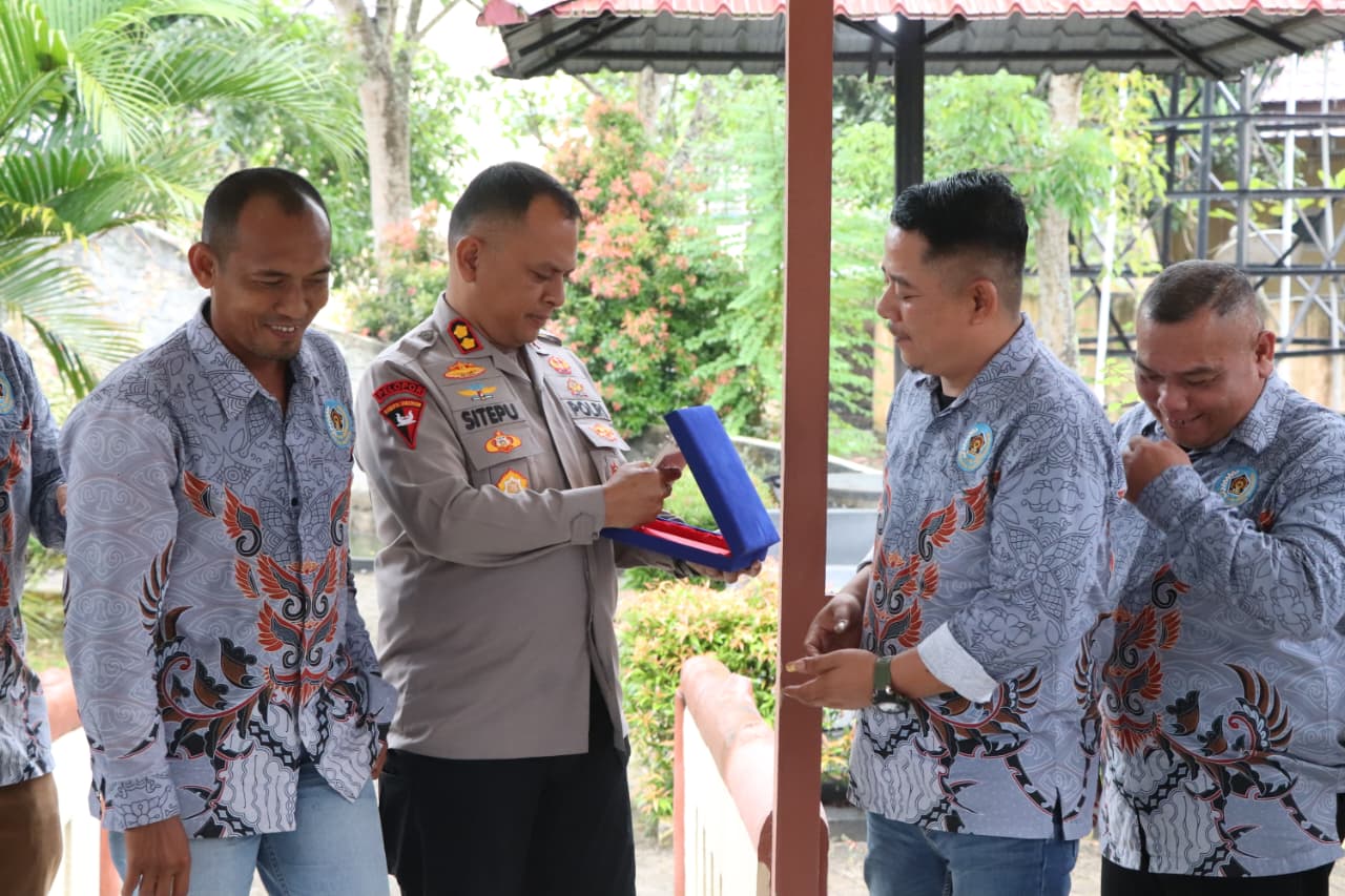 Selanjutnya, Penyerahan Cinderamata oleh pengurus PWI kepada Kapolres Serdang Bedagai.