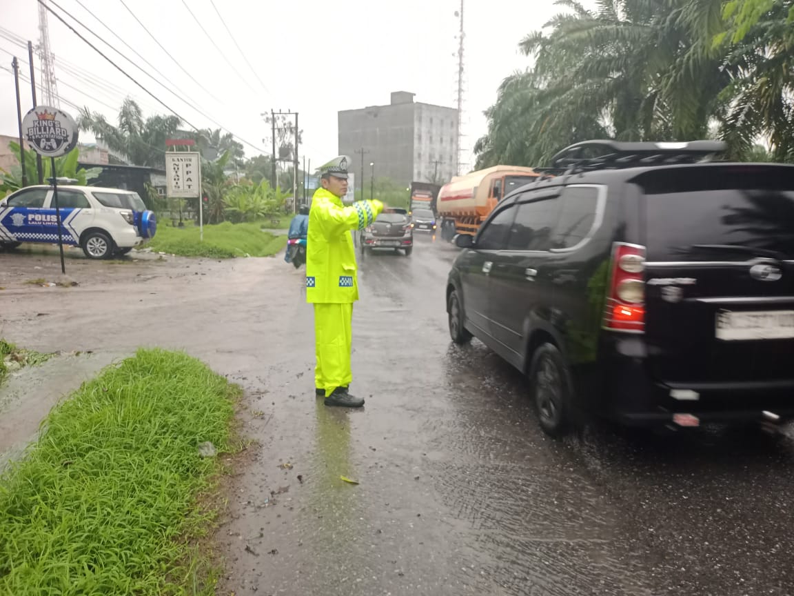 Kasat Lantas AKP Simon E. Simatupang menegaskan bahwa pelayanan kepada masyarakat tidak boleh berhenti hanya karena cuaca. “Satukan hati untuk terus mengabdi,” ungkapnya.