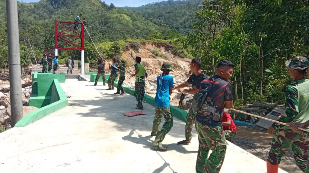 Pembangunan jembatan ini melibatkan personil Satgas Gulbencal dari personil Kodim 0211/TT, Yonif 125/SMB, Yon Arh 11/WBY, Pusziad, Zibang Sibolga, dan masyarakat. Adapun kegiatan yang telah dilaksanakan saat ini meliputi pemasangan seling jembatan, pengecoran kaki tiang pilon, dan pengecatan dek depan jembatan.