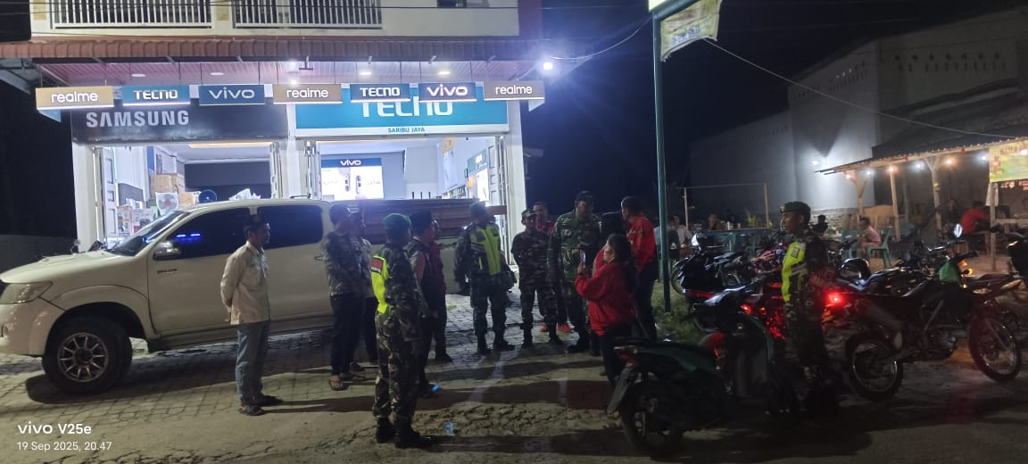 Tapteng-Dalam rangka menjaga keamanan dan ketertiban wilayah, Babinsa Koramil 02/Sorkam beserta Organisasi PBB, FKPPI, KOKAM dan BANSER Kec. Sorkam Kab. Tapanuli Tengah melaksanakan kegiatan patroli di sejumlah titik strategis. Patroli ini dilakukan sebagai bentuk kepedulian TNI terhadap rasa aman dan nyaman masyarakat, sekaligus upaya untuk mencegah potensi gangguan kamtibmas, Jumat (19/09/2025) sekira pukul 20.00 WIB s/d selesai.