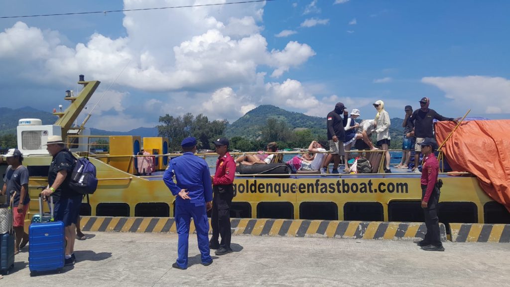 Dalam kegiatan tersebut, personel melakukan pemantauan aktivitas penumpang dan wisatawan, khususnya di area penyeberangan publik boat dan fast boat yang menjadi jalur utama mobilitas wisatawan.