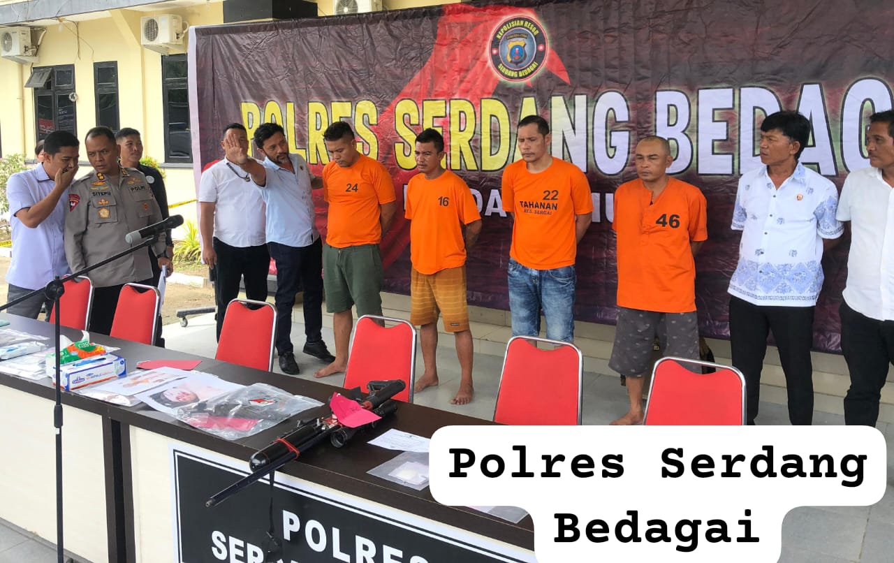 SERGAI | Buser24 com —- Polres Serdang Bedagai (Sergai) bersama Polda Sumut menangkap terduga bandar narkoba Marubah Sitanggang Cs, yang sebelumnya, mereka juga melakukan aksi penganiayaan terhadap seorang Pendeta atau Pengacara. Penganiayaan secara bersama-sama, kepemilikan senjata api/senjata tajam ilegal serta kepemilikan narkotika