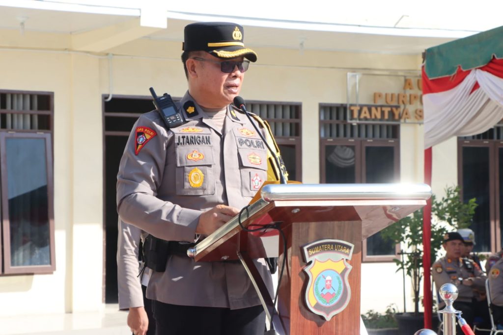 Pada kesempatan tersebut, Kabag Ops Kompol Jonista Tarigan, S.H., membacakan amanat Kapolda Sumatera Utara Irjen Pol Whisnu Hermawan F., S.I.K., M.H.