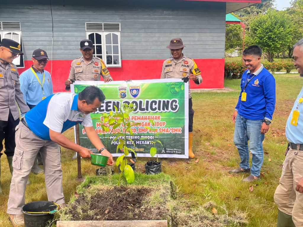 Di waktu yang sama, jajaran Polsek Merbau juga melaksanakan kegiatan Green Policing di SMP Negeri 2 Meranti Bunting, Kecamatan Merbau. Kegiatan penghijauan ini berlangsung sekitar pukul 09.00 WIB dan dihadiri oleh pihak sekolah, para guru, serta seluruh siswa.