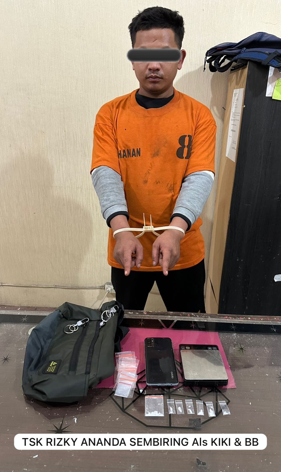 Dari lokasi, petugas mengamankan seorang laki-laki dewasa berinisial RAS alias KK (28), seorang wiraswasta yang berdomisili di Gang Kelapa, Kelurahan Tambak Lau Mulgap II, Kecamatan Berastagi, Kabupaten Karo.