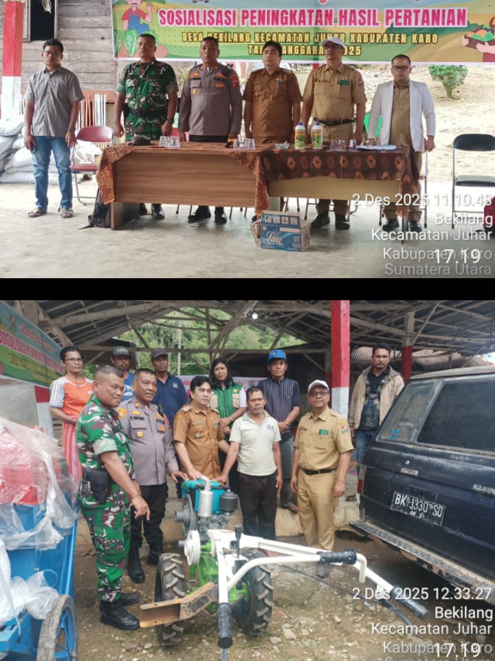 Upaya pencegahan stunting dan peningkatan ketahanan pangan kembali diperkuat melalui kegiatan Sosialisasi Rembuk Stunting dan Ketahanan Pangan yang digelar Forkopimca Juhar di Loos Desa Bekilang, Selasa (02/12/2025). Kegiatan yang dimulai pukul 10.00 WIB ini mendapat dukungan penuh dari Polsek Juhar, Koramil 07/JH, Puskesmas, serta unsur desa.