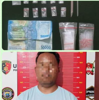 Petugas berhasil mengamankan barang bukti dari tangan pelaku yakni Uang Rp. (100.000), seratus ribu rupiah. (11) sebelas helai plastik klip transparan beriskan butiran kristal diduga sabu. Dan