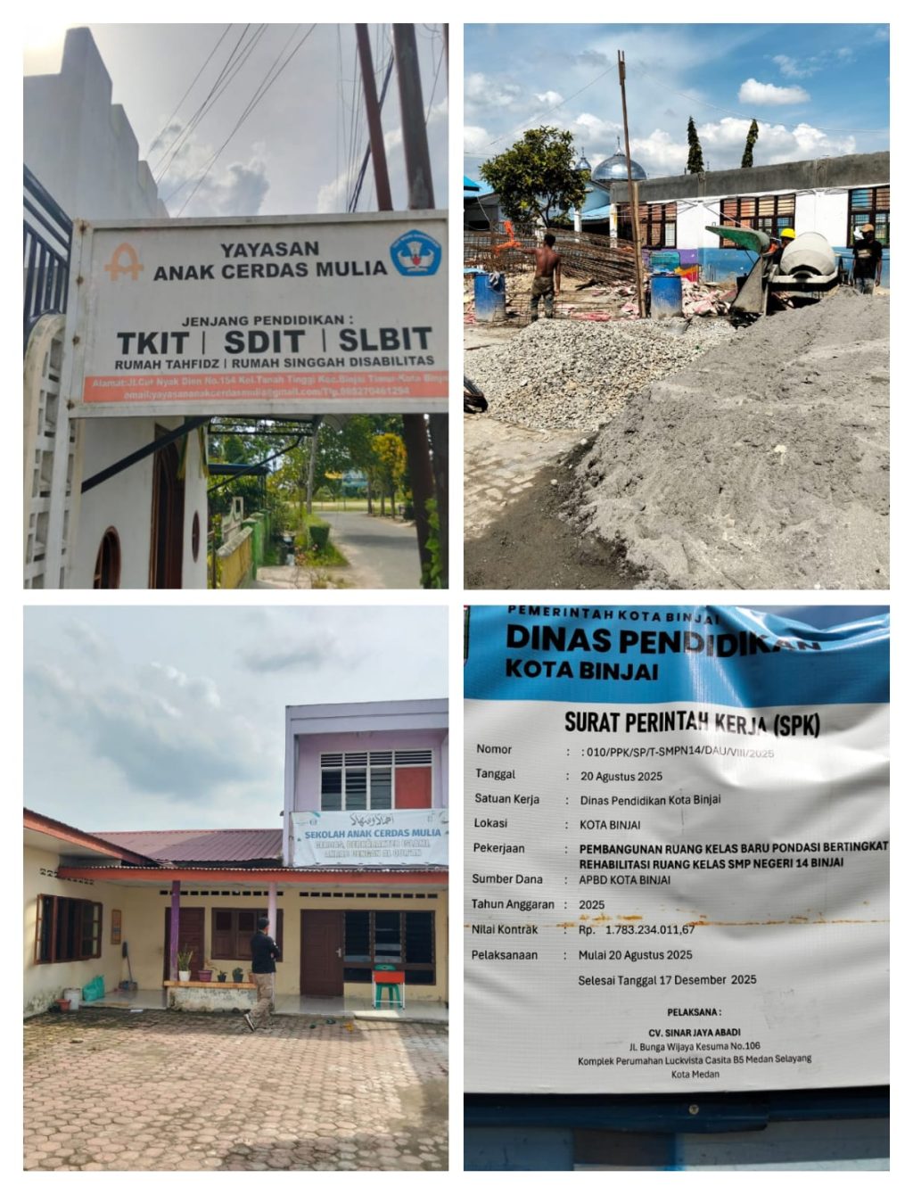 Sementara itu pihak PPK Proyek di Disdik Binjai Auzar Habibie Marpaung ketika dikonfirmasi Wartawan, Rabu sore ( 19/11/2025 ) di kantor Disdik Binjai, mengatakan ada dua hal proyek yang membuat dirinya pusing termasuk batalnya proyek di Yayasan Anak Cerdas Mulia di Binjai Timur dan progres Pembangunan RKB di SMPN 14 Binjai.Dan menurut sumber APH di kota Binjai diminta turun-tangan melakukan pengusutan dan pengawasan ketat proyek yang bersumber dari uang negara ini.(PB).