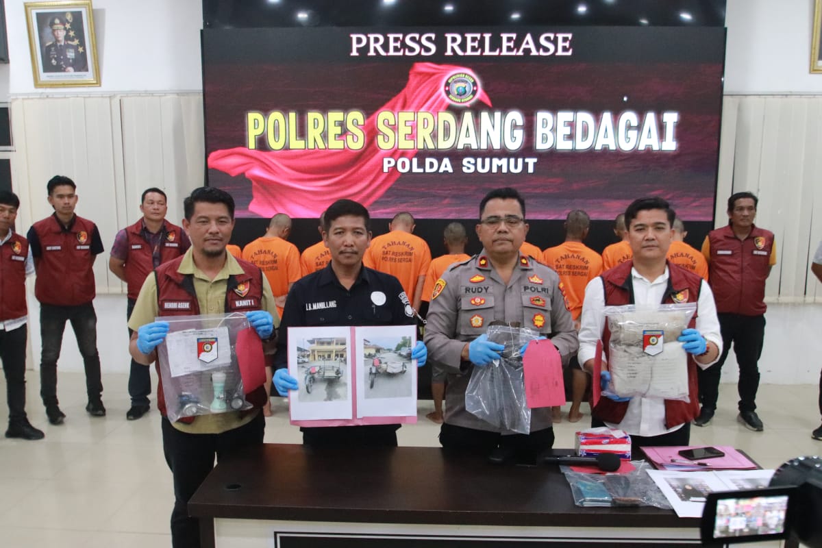 Kapolres Serdang Bedagai AKBP Jhon Sitepu, SIK, MH, Yang Diwakili Wakapolres Serdang Bedagai Kompol Rudy Candra, SH, MH. Kasat Reskrim Polres Sergai IPTU Binrod Situngkir, SH., MH.